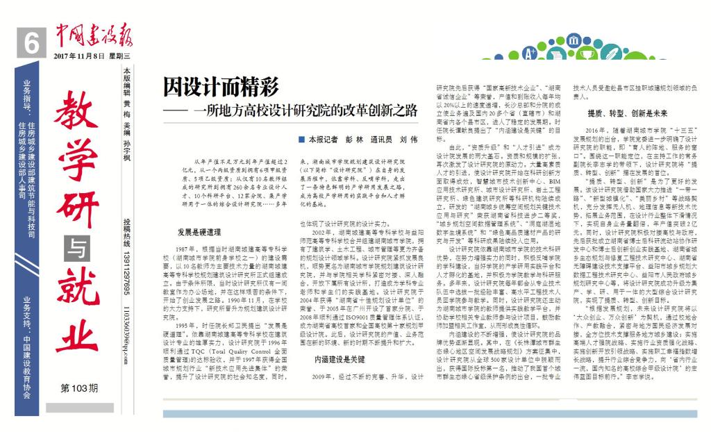 《中国建设报》11月8日报道金年金官网规划建筑设计研究院改革发展成就