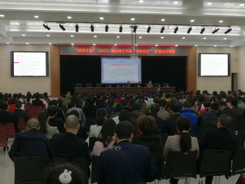 (本网讯)11月11日至12日,学校继续教育学院圆满完成“国培计划”(2017)送培到县示范性培训工作任务。来自益阳市资阳区和赫山区的小学音乐、初中数学和英语教师共700人参加了培训。