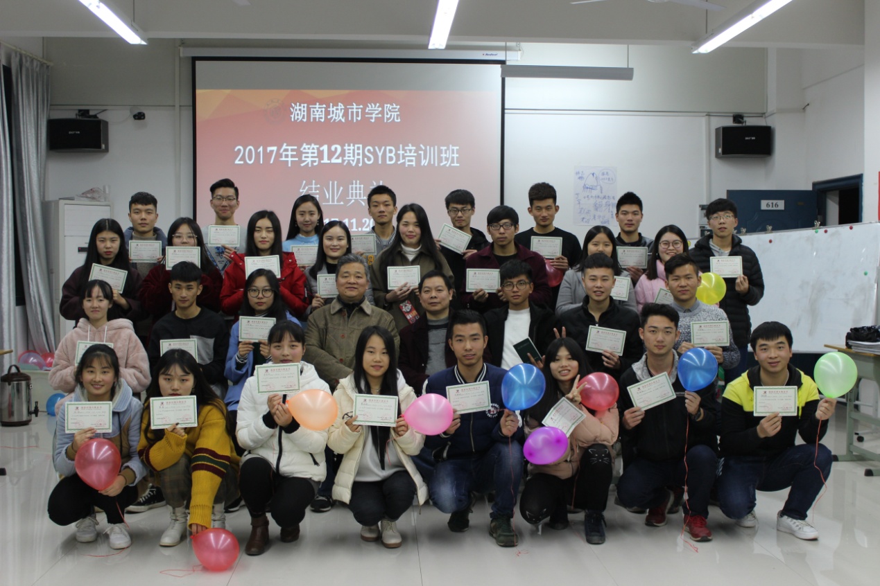 (本网讯)经过为期7天的培训,由学校继续教育学院举办的2017年第12期SYB创业培训班在土木楼SYB培训室举行了结业典礼,30名受训学员获得SYB结业证书,至此金年金官网共有360名学生通过了SYB创业培训。