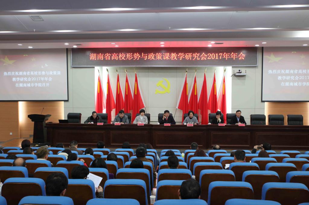 (本网讯) 12月23日上午,湖南省高校形势与政策课教学研究会2017年年会在金年金官网图书馆报告厅隆重举行。学校党委书记罗成翼、湖南省教育工委宣传部部长刘书华、湖南省高校思政课教研会秘书长冷舜安、时事报告杂志社湖南站站长马立雄出席开幕式并致辞。各会员单位的高校教师共90余人出席会议。本次年会由金年金官网马克思主义学院承办。