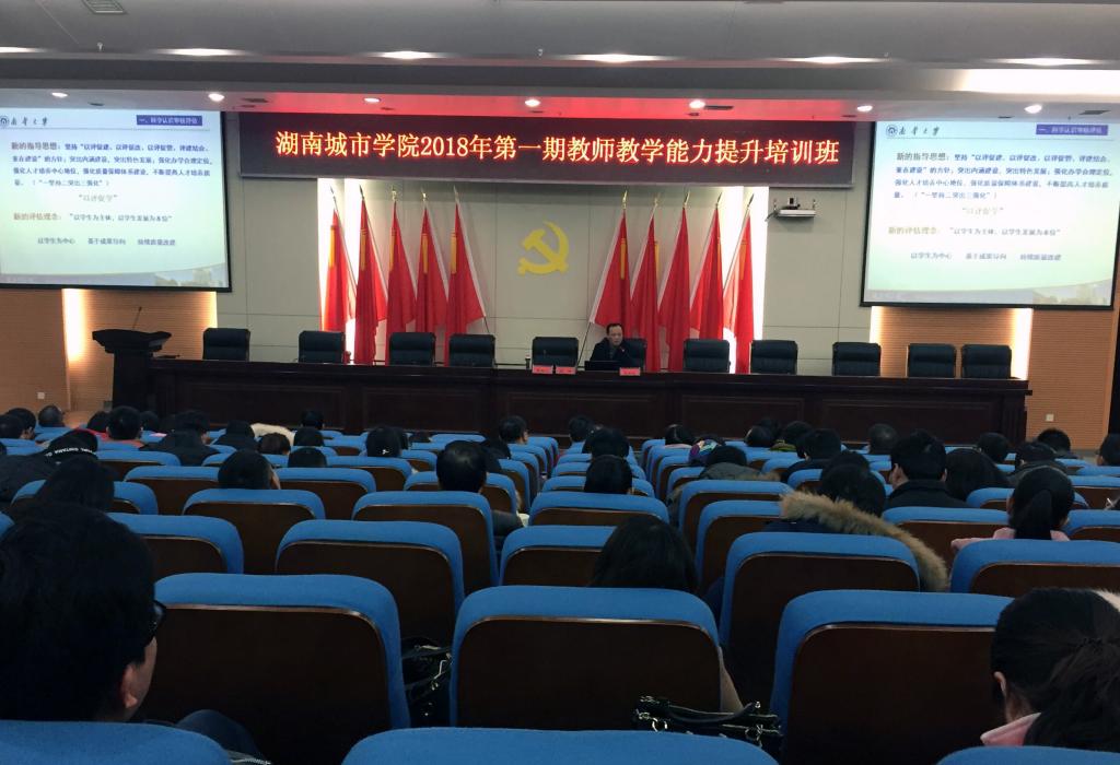 (本网讯)1月13日,学校举办了2018年第一期教师教学能力提升培训班,特邀湖南师范大学向玉乔教授、徐满才教授和南华大学龙双涟教授作相关培训报告。校长李建奇出席培训班并作重要讲话,金年金官网200多名青年教师参加了培训。