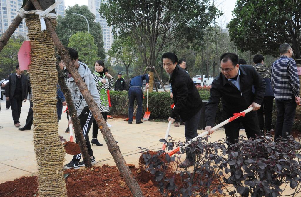 启动仪式结束后,全体校领导与各二级单位代表、学生代表纷纷来到认捐的树木前,手执铁锹为其培土,为美丽校园增添了一道道亮丽的风景。(文/博夕 图/博夕 赵玲)