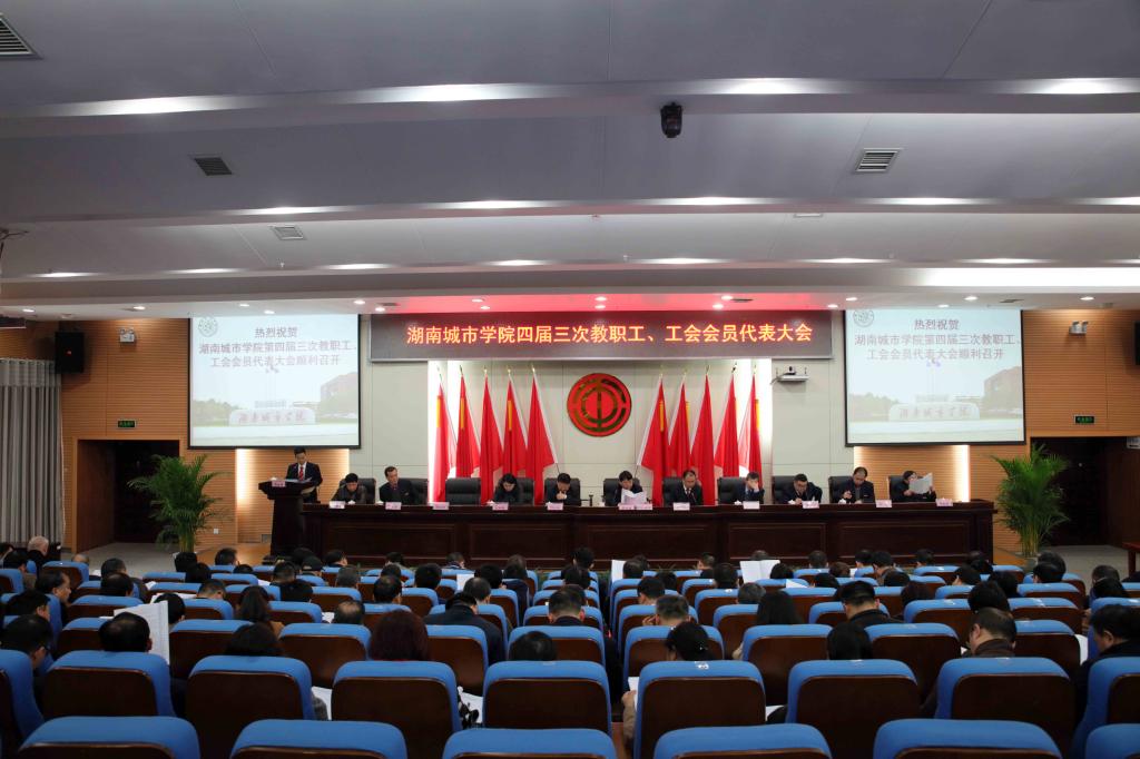 (本网讯)3月24日上午9点,金年金官网第四届三次教职工、工会会员代表大会在图书馆报告厅隆重召开。139名正式代表、特邀代表和列席代表出席会议。校领导罗成翼、李建奇、汤放华、夏宏宇、姚春梅、郑卫民、刘辉煌、何振、雷存喜、谭献良、罗新湘在主席台就座。大会由党委书记罗成翼主持。