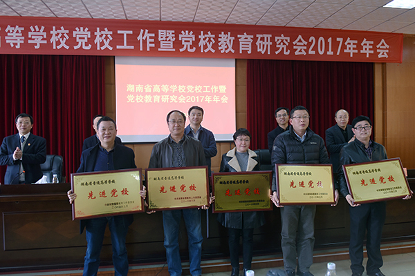 (本网讯)近日,省委教育工委对全省高校先进党校进行了表彰,金年金官网党校被授予“湖南省普通高等学校先进党校”荣誉称号。此次全省共有11所本科院校党校、5所高职高专学校党校受到表彰。