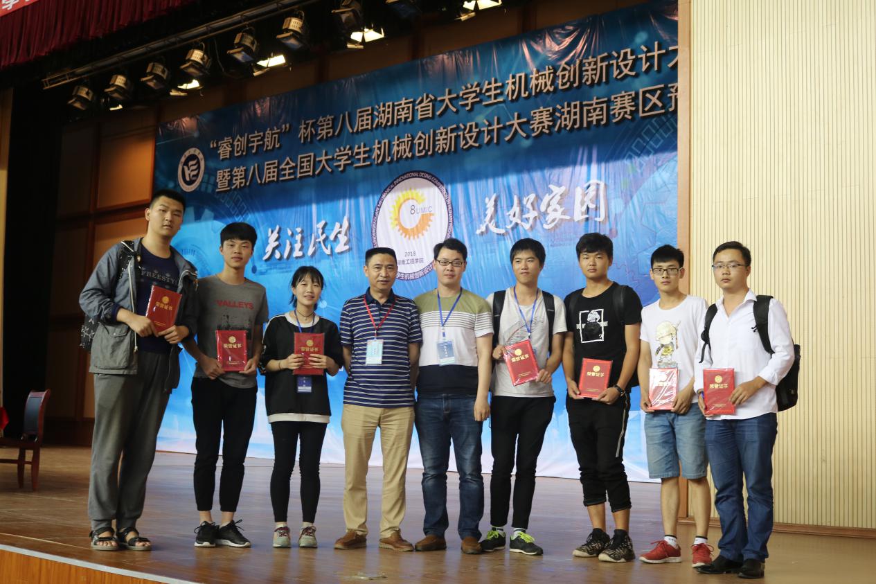 (本网讯)5月11日至13日,由湖南省教育厅主办的第八届湖南省大学生机械创新设计大赛在湖南工程学院举行。来自国防科学技术大学、中南大学、湖南大学等全省33所高校1000余名师生参赛,共提交作品243件。金年金官网机械与电气工程学院共组织三支队伍参赛,经过三天的现场观摩、问辩、分组答辩等环节的激烈比拼,分别获得一、二、三等奖各一项。