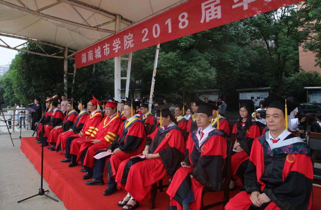 典礼在庄严雄壮的国歌声中拉开帷幕。校长李建奇作了热情洋溢的致辞。他首先对圆满完成大学学业的2018届毕业生们热烈的祝贺,向辛勤培育毕业生们的父母和老师致以崇高的敬意。他表示,毕业不是终点,而是人生新的起点,希望所有毕业生带着奋斗再出发,重振雄风再上路,生命不息,奋斗不止。一是要继承传统,矢志不渝。要秉持和发扬前辈们艰苦奋斗的创业精神,努力成为新时代建设中国特色社会主义事业的中流砥柱;二是要装好行囊,有备而战。奋斗路上,要拾掇起知识、技能、自信、梦想、坚持、创新和健康,在挑战面前,要沉着、坚毅、果敢、从容和淡定;三是要勇攀高峰,不畏险阻。在追求事业的过程中,不要满足于眼前小小成就而沾沾自喜,也不要被一点小小的挫折而自暴自弃,要敢于去跨越一道道生活的坎坷,去攻克一个个职业的难关,去战胜一次次心理的障碍;四是要向上向善,磊落光明。要坚守精神道德高地,有一颗向善之心、恻隐之心、博爱之心和宽容之心,养浩然正气,秉家国情怀;五是要要同频共振,奋勇争先。要在不懈奋斗中释放青春活力,在攻坚克难中追逐美好理想,在不断奋进中实现人生价值。