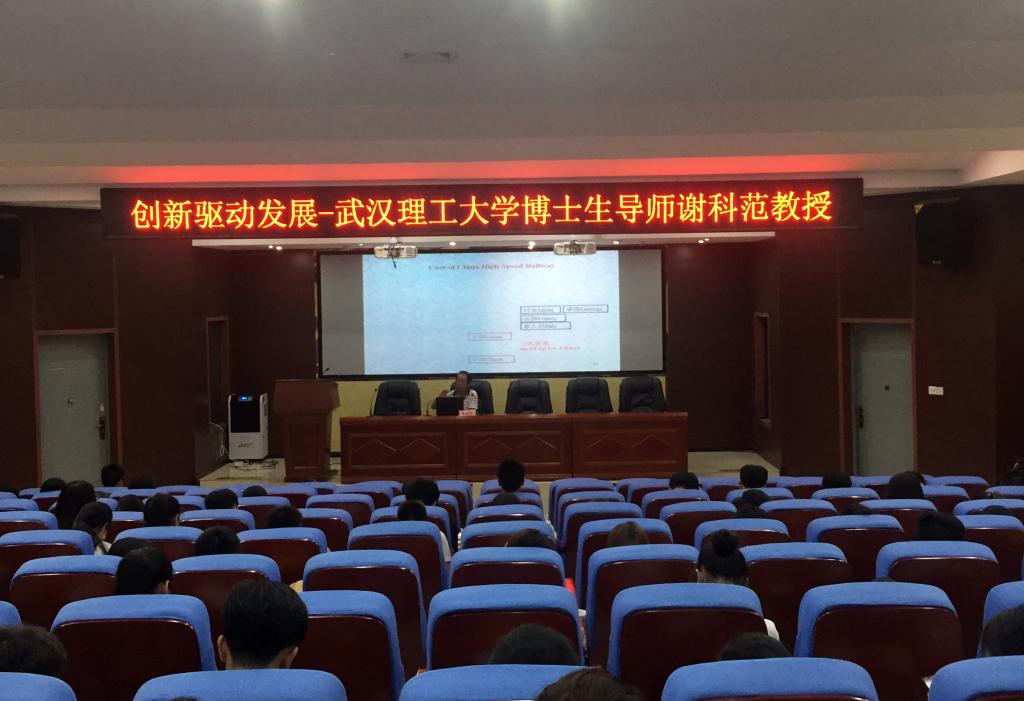 当天晚上,谢科范教授还面向学生作了题为《创新驱动发展》的专题报告。他从“创新驱动的历史与现实背景”、“创新驱动企业发展”、“企业创新的风险防控”三个层面,从宏观和微观两个视角和维度,以及一批实例举证,畅谈了创新创业的意义、成就、规律及其风险,受到同学们的热烈欢迎和赞誉。(李教明)