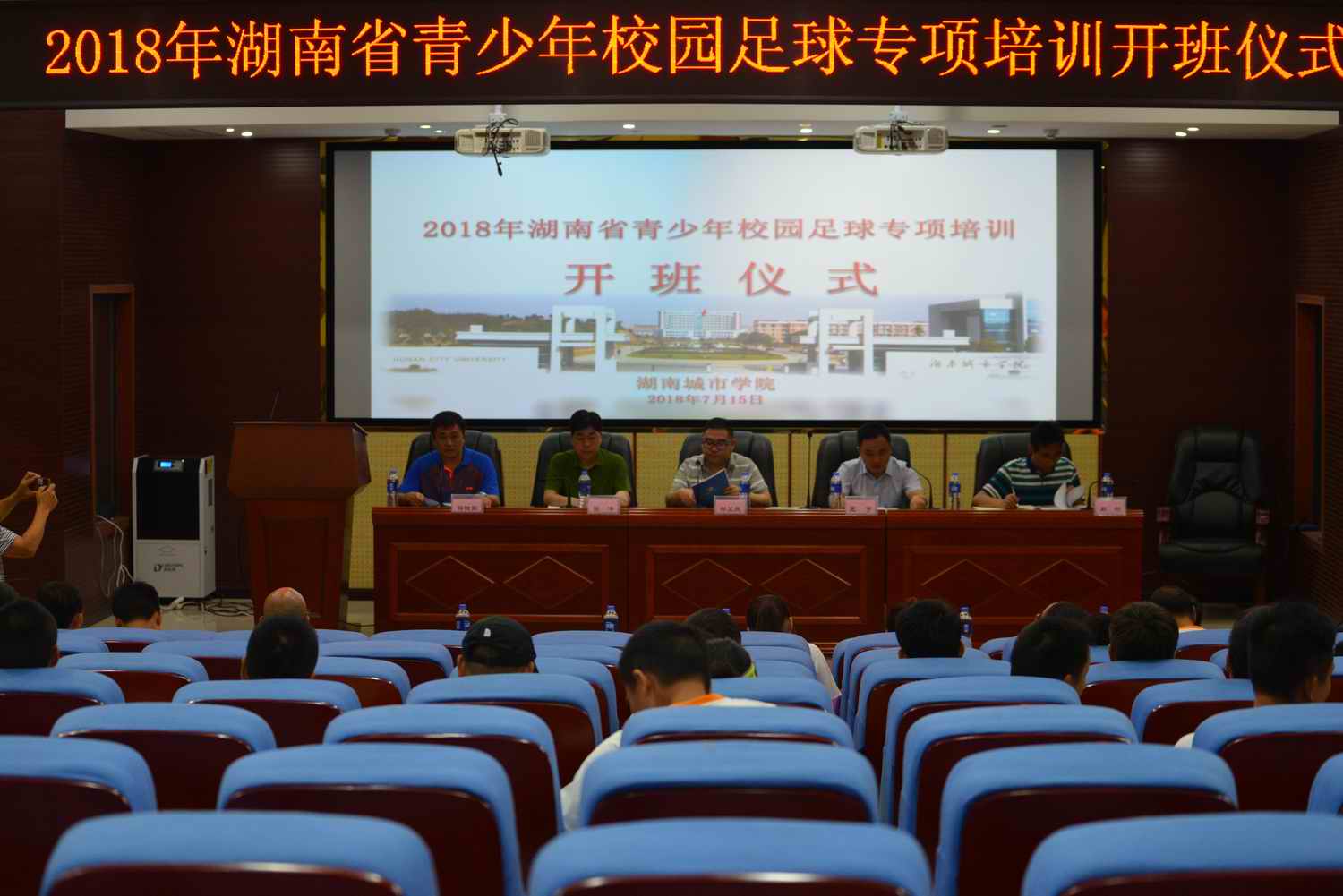 (本网讯)7月15日上午9:30,由湖南省教育厅、湖南省青少年校园足球工作领导小组主办,金年金官网承办的2018湖南省青少年校园足球中小学骨干体育教师培训开班。副校长郑卫民,省教育厅体卫艺处王宇科长、省校园足球办公室主任李泽群,学校教务处负责人、体育学院领导班子成员、本期培训班授课教师、班主任及工作人员等出席了开班仪式。益阳地区、常德地区2018年校园足球中小学骨干体育教师80名学员参加了此次培训。