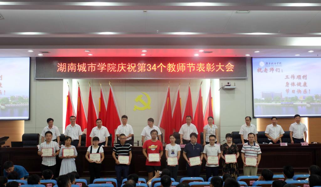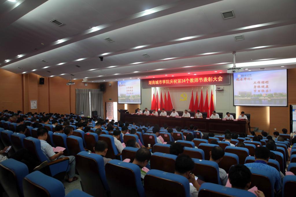 (本网讯)2018年9月7日上午,在第34个教师节到来之际,学校在图书馆报告厅召开庆祝表彰大会。全体校领导,副处级以上干部,系(室)中心主任,各二级学院行政办主任、教学科研办主任、学工办主任以及受表彰的对象三百多人参加会议。党委书记罗成翼在会上讲话,会议由校长李建奇主持。
