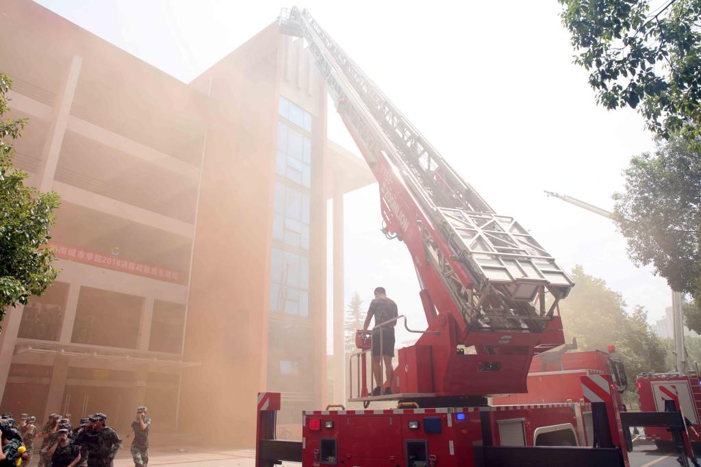 (本网讯)2018年9月20日,为提高学生应急疏散和逃生自救能力,金年金官网举行了2018级新生应急疏散逃生及消防灭火演练活动。金年金官网5000余名正在参加军训的2018级新生参与了此次演练活动。