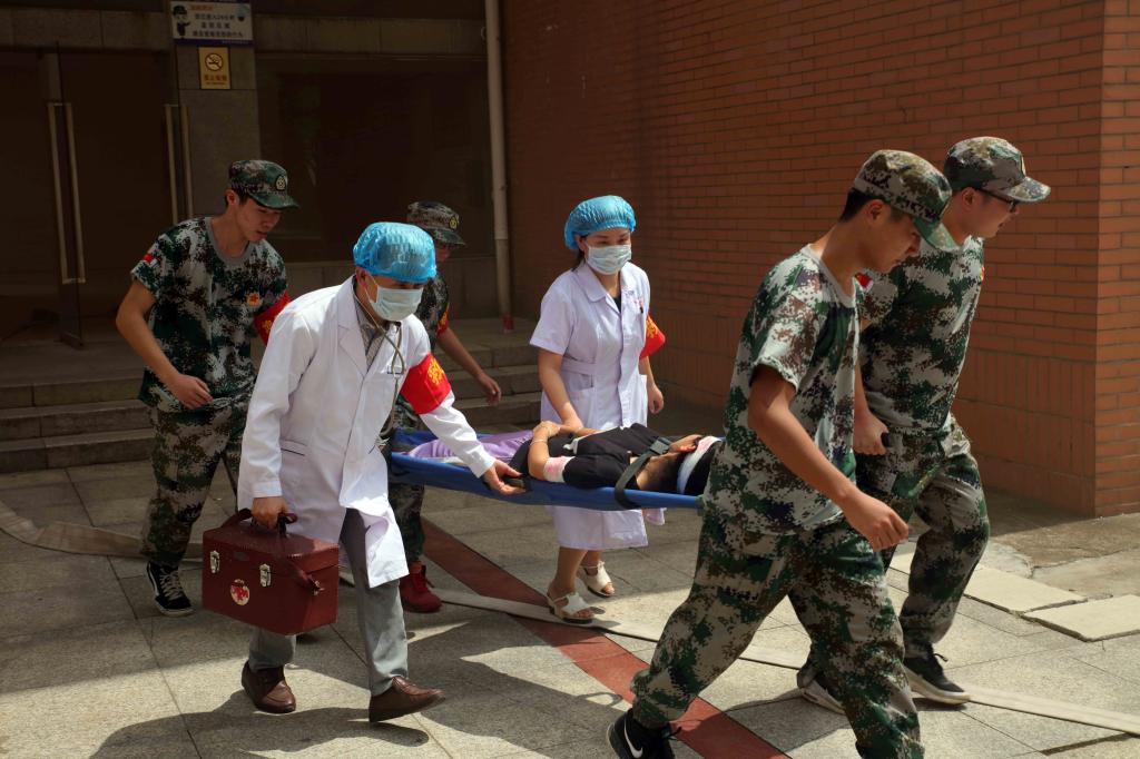 搜救队现场救援伤者