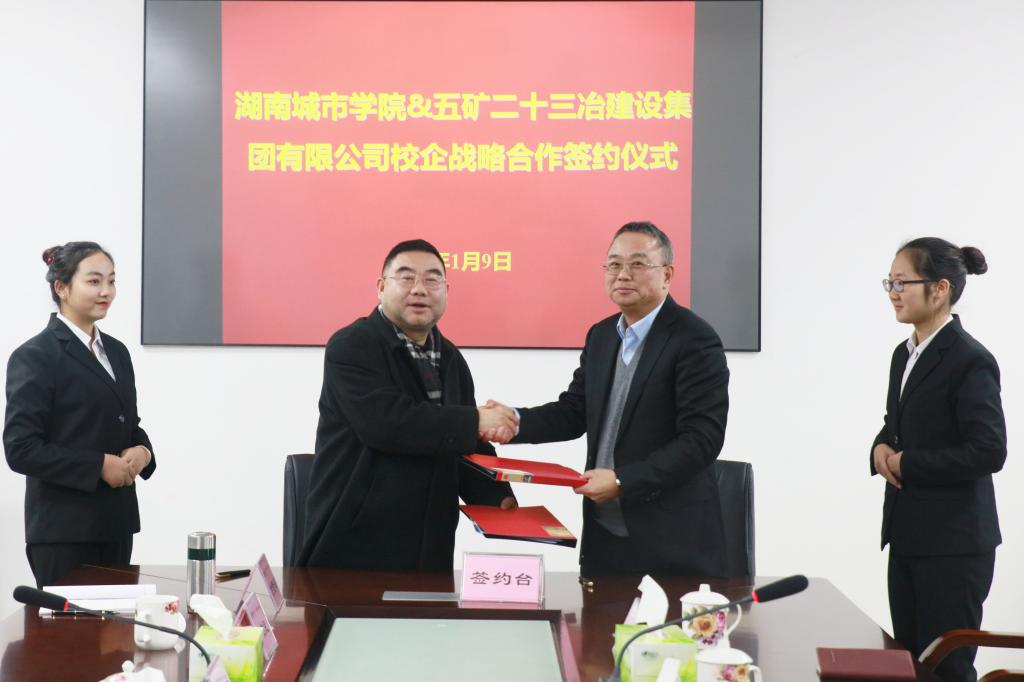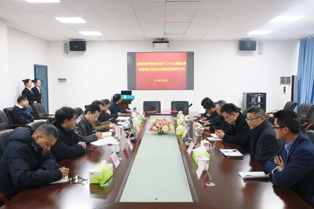 (本网讯)2019年1月9日上午,金年金官网与五矿二十三冶建设集团有限公司校企合作战略协议签约仪式在土木楼会议室举行。五矿二十三冶建设集团有限公司党委副书记、工会主席陈怀忠,人力资源部副总经理程军红,副校长郑卫民、雷存喜以及教务处、招生就业处、土木工程学院相关负责人出席签约仪式。签约仪式由雷存喜主持。