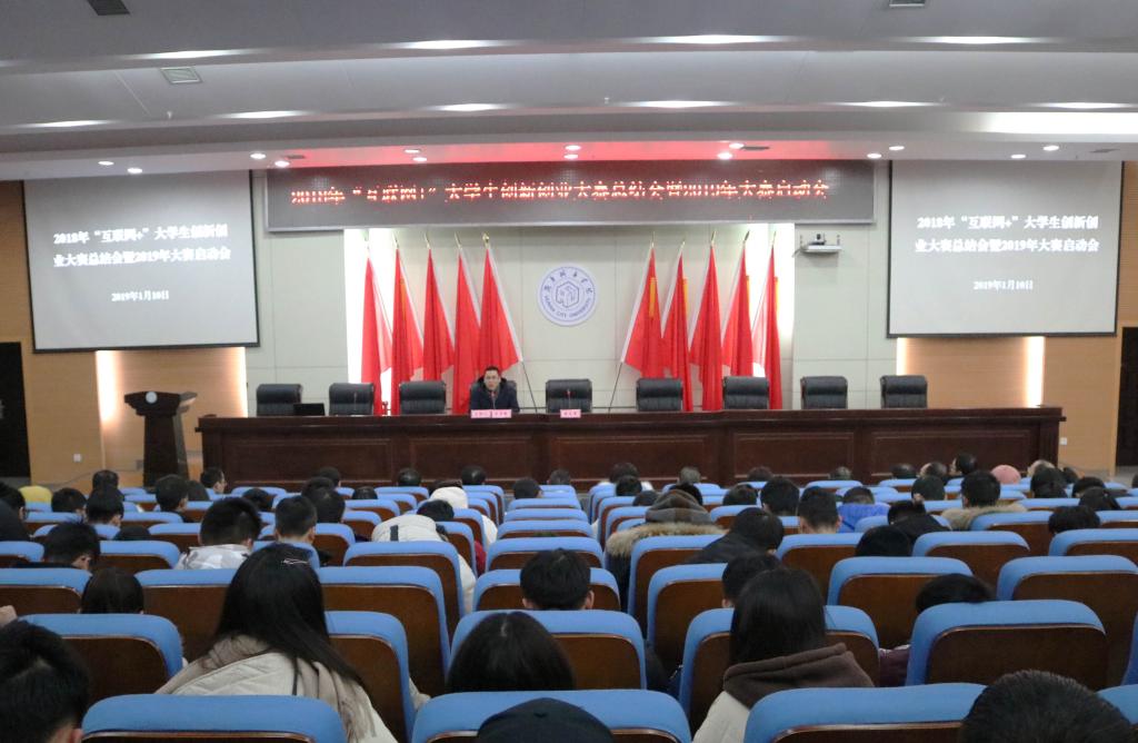 (本网讯)2019年1月10日晚,金年金官网2018年“互联网+”大学生创新创业大赛总结会暨2019年大赛启动会在图书馆报告厅举行。副校长郑卫民,教务处、学工部、团委等部门负责人、各二级学院分管创新创业工作的领导和新聘创新创业导师、各学院学生代表、省赛获奖项目团队成员代表等200余人参加了会议。会议由应用与创新创业学院院长李梦醒主持。