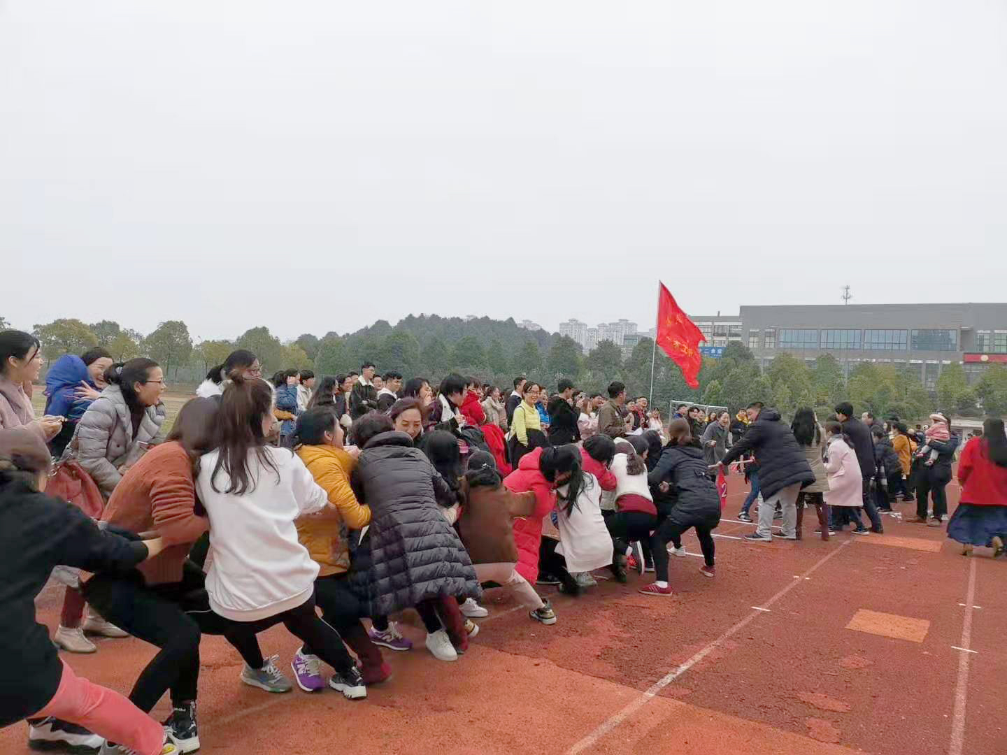 (本网讯)2019年3月7日下午,金年金官网在学校田径场举行了庆 “三八”妇女节拔河比赛。全校女教职工组成12支队伍共200多人参加了比赛。