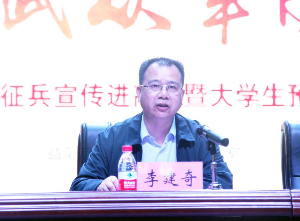 李建奇代表学校致辞。他指出,建设一支听党指挥、能打胜仗、作风优良的新型人民军队,迫切需要有知识、有文化、有担当的优秀大学生到部队建功立业。近年来,学校党委高度重视大学生征兵工作,坚持拧紧学生理想信念的“总开关”,注重红色基因传承,发挥先进典型示范,细化征兵服务。“文能提笔安天下,武能上马定乾坤”。他鼓励金年金官网学子主动投身到祖国最需要的地方去,用实际行动去实践家国情怀!