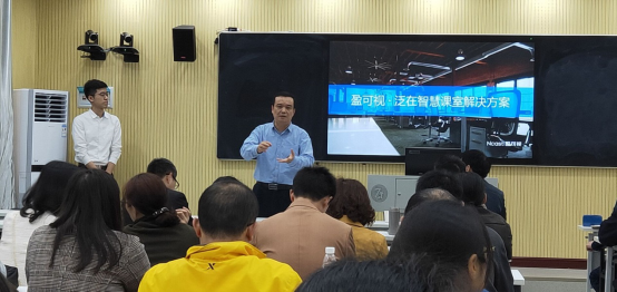 广州盈可视公司技术员做智慧教室信息化设备使用方法培训。