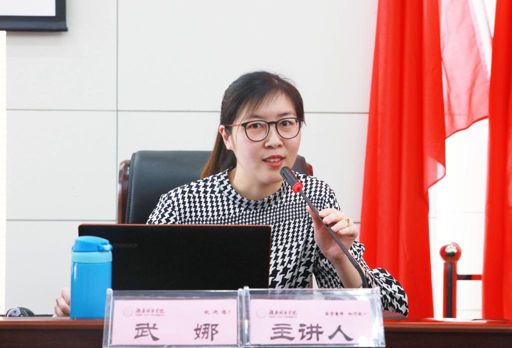论坛上,湖南工艺美术职业学院的武娜老师受邀作了《品诗词经典 树文化自信》的说课展示,和大家一起分享了线上线下、课内课外相结合的混合式教学模式的教学成果和经验做法。