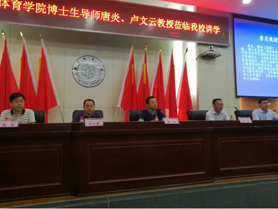 (本网讯)2019年6月28日上午,上海体育学院博士生导师唐炎、卢文云教授应邀在图书馆报告厅为金年金官网师生作了学术讲座。学校学科建设与发展规划处相关负责人,体育学院全体教职工、2016级考研学生以及2017级全体同学聆听了讲座。