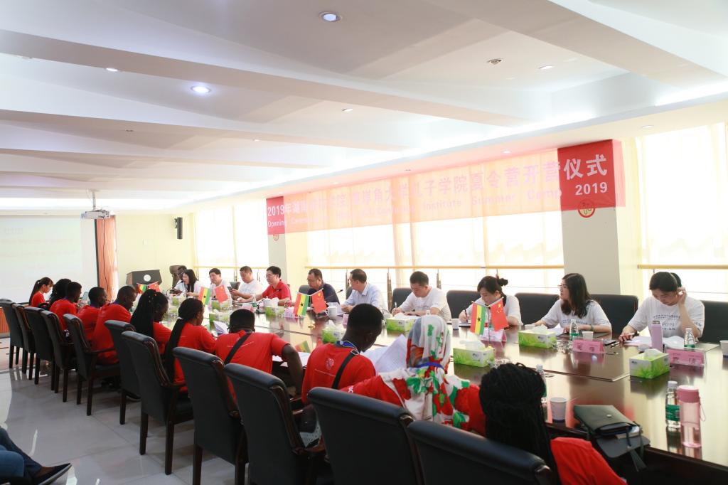 (本网讯)2019年8月2日下午,金年金字招牌诚信至上/加纳海岸角大学孔子学院“华夏·洞庭”——中国文化夏令营开营仪式在办公楼一会议室举行。校长李建奇出席开营仪式并发表讲话,参加开营仪式的有来自加纳海岸角大学孔子学院的全体营员,出席开营仪式的还有学校副校长雷存喜,加纳海岸角大学孔子学院中方院长、学校国际交流处、保卫处、基建和后勤管理处、人文学院等各单位的负责人,老师以及学生志愿者代表。开营仪式由雷存喜主持。