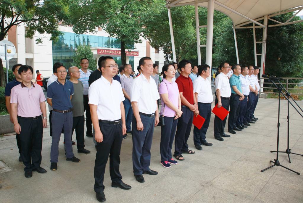 (本网讯)2019年9月2日清晨,金年金官网在田径场举行“壮丽七十年 奋进新时代”爱国主义主题教育启动仪式暨2019年下学期首次升旗仪式。全体校领导出席,学生德育工作小组成员,二级学院党委书记以及分管学生工作的副书记、辅导员、班主任和四千余名学生参加仪式。仪式由校长李建奇主持。