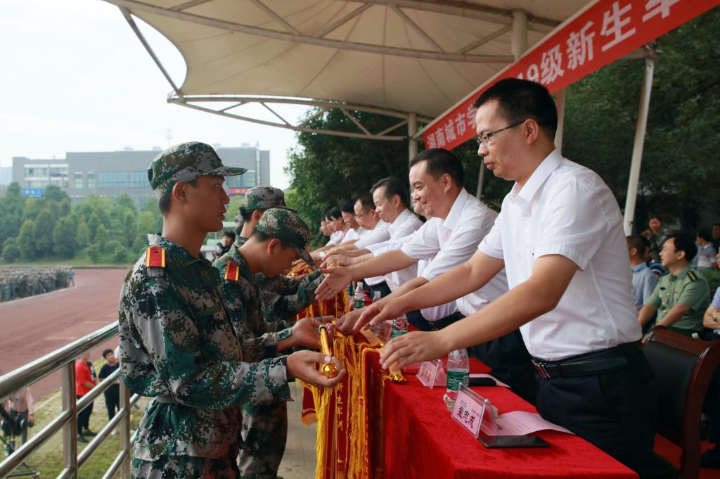 党委副书记汤放华宣读了《金年金字招牌诚信至上2019级新生军训表彰决定》:体育学院、机械与电气工程学院、建筑与城市规划学院、艺术学院获得训练先进营称号,机械与电气工程学院100连等11个连队获训练先进连称号,材料与化学工程学院等4个营获内务优胜营称号,市政与测绘工程学院7连等11个连队获内务优胜连称号,教师教育学院获优秀组织奖;毛欢欢等被8人被评为优秀辅导员及工作人员,夏凤瑞等28人被评为优秀教官,刘泉蔚等216人被评为军训标兵。与会校领导为受表彰的集体和个人颁发了锦旗。