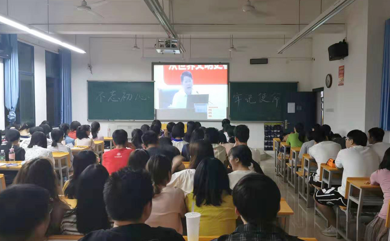 学生以班为单位收看宣讲报告会