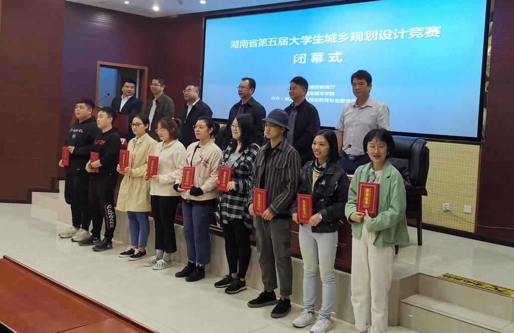 13日上午9:00,比赛举行了闭幕式。校长李建奇,湖南城乡规划学会理事长、校党委副书记汤放华,副校长郑卫民,湖南城乡规划学会副理事长、长沙市规划设计院副院长谭春华出席会议并为获奖选手颁奖。
