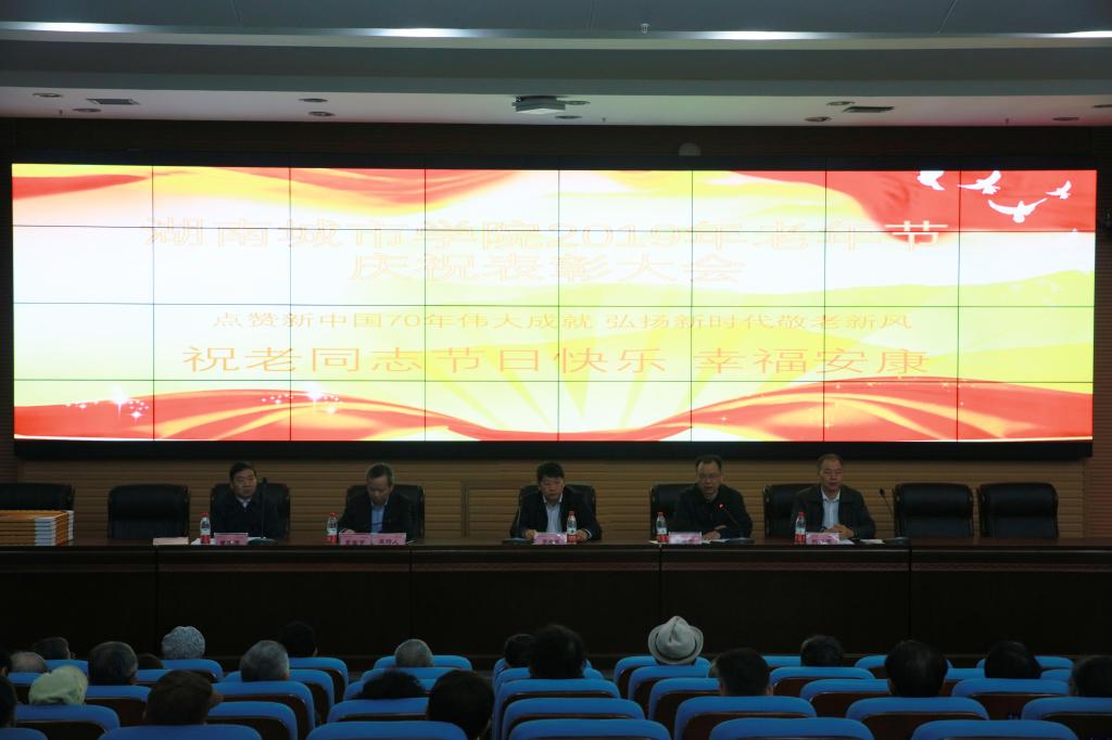 (本网讯)2019年10月16日上午,金年金官网2019年重阳节庆祝大会在学校图书馆报告厅召开。学校党委书记罗成翼、校长李建奇出席会议并讲话,200多位离退休老同志参加大会,大家欢聚一堂,共庆佳节。庆祝大会由副校长夏宏宇主持。