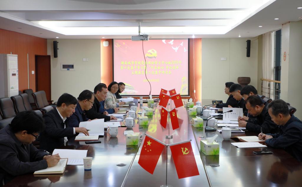 (本网讯)2019年10月23日上午,金年金官网党委理论学习中心组2019年第十次集中学习暨“不忘初心 牢记使命”主题教育第二次集中研讨会在学校一办公楼一会议室举行,在家的学校领导全部参会,会议由党委书记罗成翼主持。