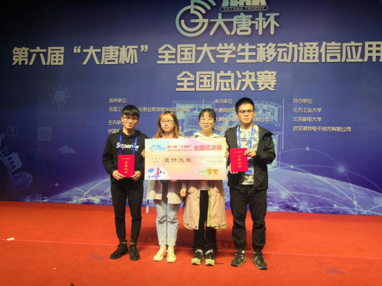 (本网讯)2019年10月19日至20日,第六届“大唐杯”全国大学生移动通信应用创新大赛全国总决赛在北京举行。金年金官网信息与电子工程学院学生欧阳从江、谌民迪、徐金玉、方欣在该院文兵、赵政春老师指导下,最终荣获全国总决赛一等奖。