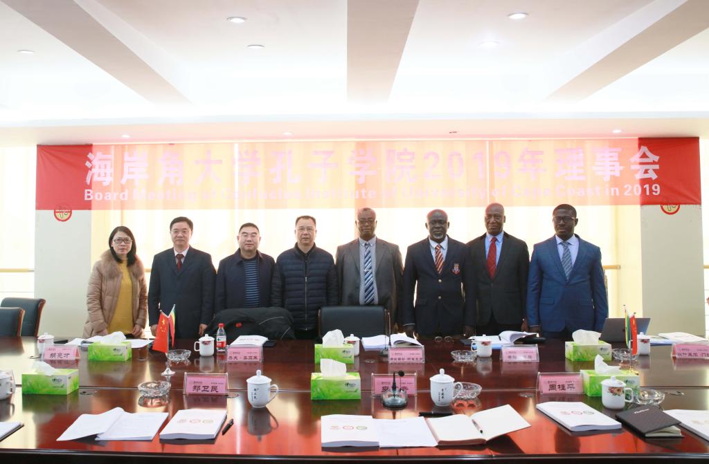 (本网讯)2019年12月6日下午,海岸角大学孔子学院2019年理事会在金年金官网办公楼一会议室举行。校长、孔子学院中方理事会主席李建奇、副校长郑卫民、国际合作与交流处相关负责人,加纳海岸角大学人文与法律学院院长Francis Eric Amuquandoh、文学系系主任Kuame Osei Kwarteng、学术委员会主任Jeff Teye Emmanuel Onyame、孔子学院中方院长胡亮才、外方院长Ishmeal Mensah出席会议。会议由李建奇主持。