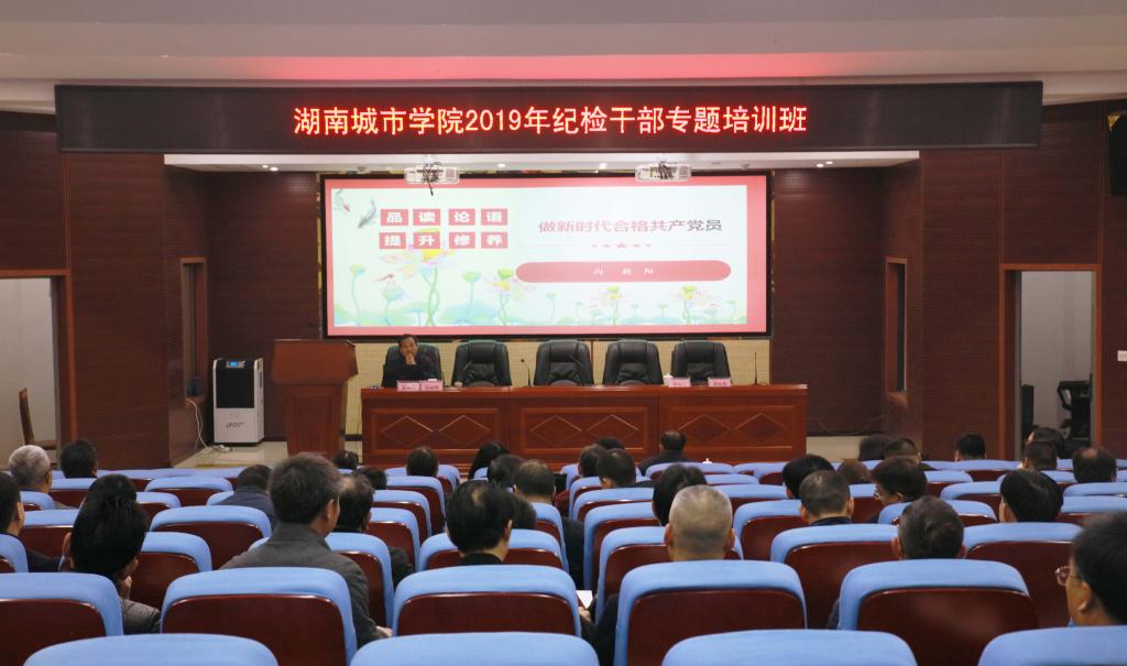 (本网讯)2019年12月14日,为加强学校专兼职纪检队伍建设,提升适应新时代高校纪检监察工作的专业精神和专业能力,增强依纪依法履职本领,金年金官网在建规楼121报告厅举办了纪检监察干部培训。省纪委省监委驻省教育厅纪检监察组正处级纪检监察员、二级调研员向朝阳应邀来校,作了题为“品读论语,提升修养,做新时代合格共产党员”的专题讲座。省委教育工委党校第121期处级干部培训班学员,各二级党委(党总支)纪检委员、党风校风观察站成员,纪检监察处全体干部参加了本次培训。