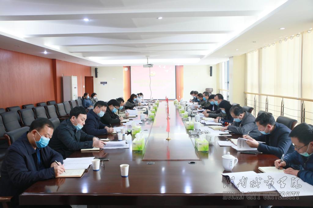 本网讯 2020年3月18日,学校党委理论学习中心组2020年第二次集体学习在办公楼一会议室举行。会议由党委书记罗成翼主持,党委中心组全体成员参加学习。
