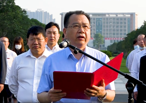 学校党委书记罗成翼作国旗下的讲话。