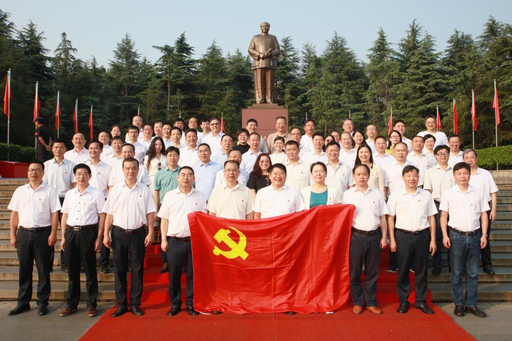全体人员来到韶山后,首先参观了毛主席纪念馆。在讲解员的引导和解说下,全体党员干部全面了解了毛泽东同志从求学、参加革命到带领全国人民建立新中国伟大而光辉的一生。一件件史实、一个个故事、一张张图片……让大家重温了那段交织着血与火的历史,感受了“为有牺牲多壮志,敢教日月换新天”的韶山精神,心灵一次次受到洗礼。参观结束后,全体人员来到毛泽东铜像广场,集体向毛泽东同志铜像敬献花篮,庄严地向毛泽东同志铜像鞠躬,深切缅怀一代伟人。在党委书记罗成翼领誓下,全体党员干部面对党旗,一起重温了入党誓词。