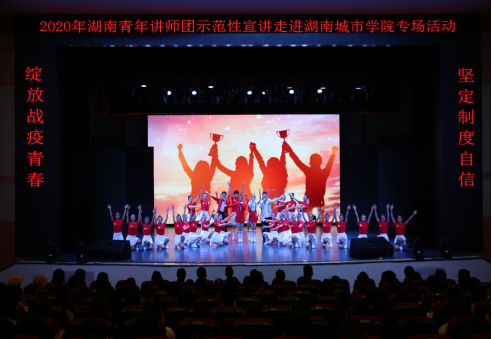 活动以金年金官网大学生艺术团的《新时代 新城院》原创快板书表演开场。湖南省青年讲师团的陈科文、王皓、董青、张乐蒙、朱威宏五位讲师走进金年金字招牌诚信至上,从自身的工作实际和典型事迹出发,向同学们分享了他们的抗“疫”故事,还原了抗“疫”一线画面。