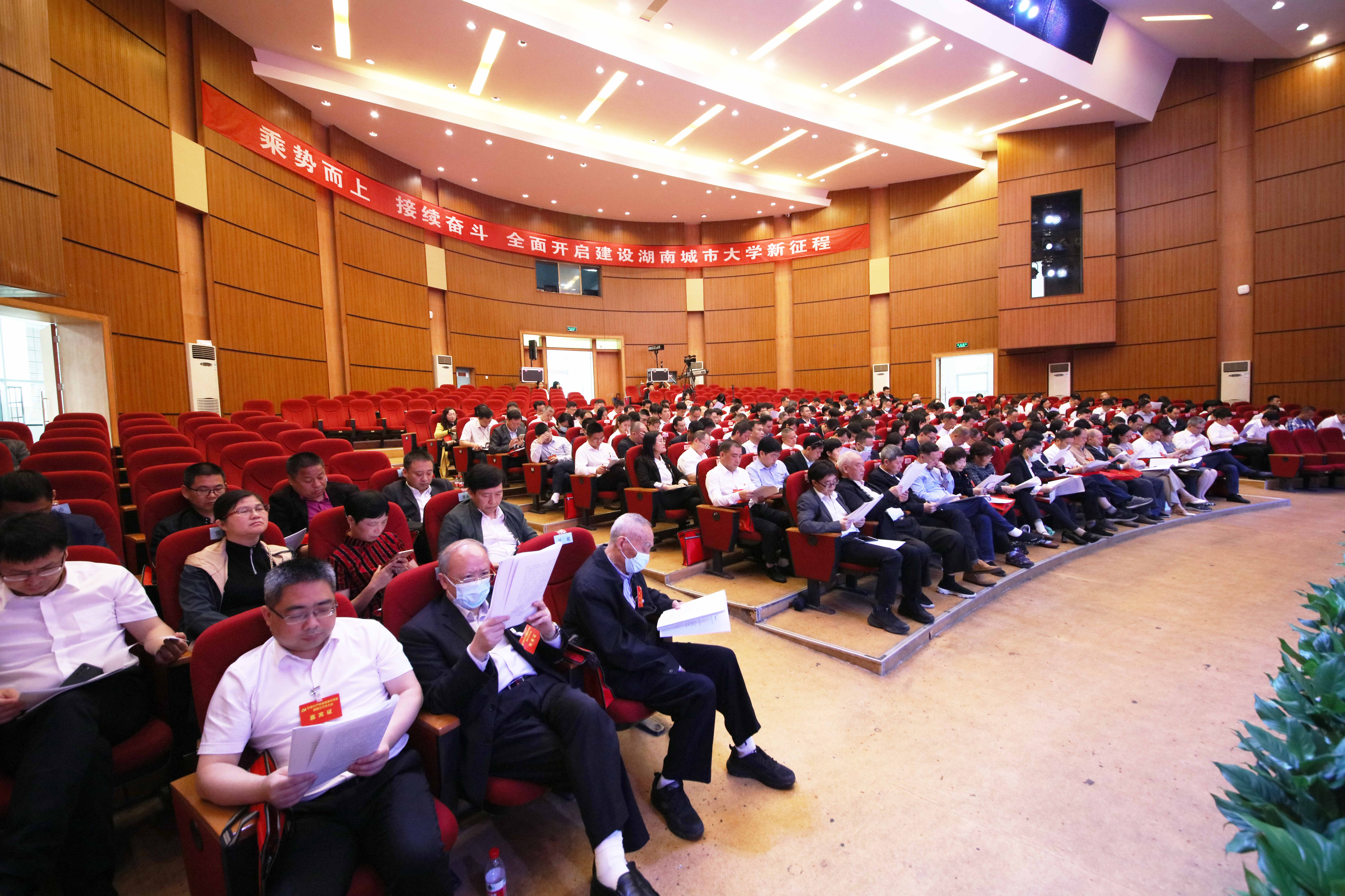 大会的主题是:以习近平新时代中国特色社会主义思想为指导,立足新发展阶段,贯彻新发展理念,融入新发展格局,服务湖南“三高四新”战略和益阳“东接东融”战略,全面谋划“十四五”发展蓝图和中长期发展愿景,乘势而上,接续奋斗,凝心聚力,深化综合改革,加强内涵建设,持续推进事业发展,全面开启建设湖南城市大学新征程。