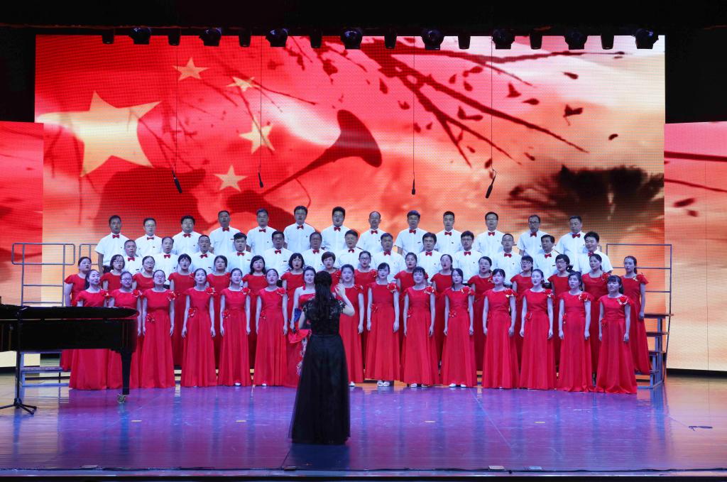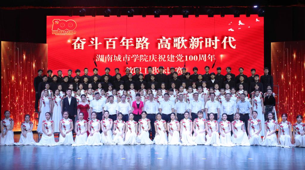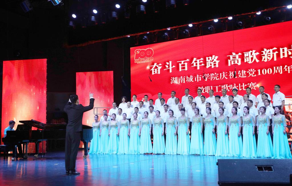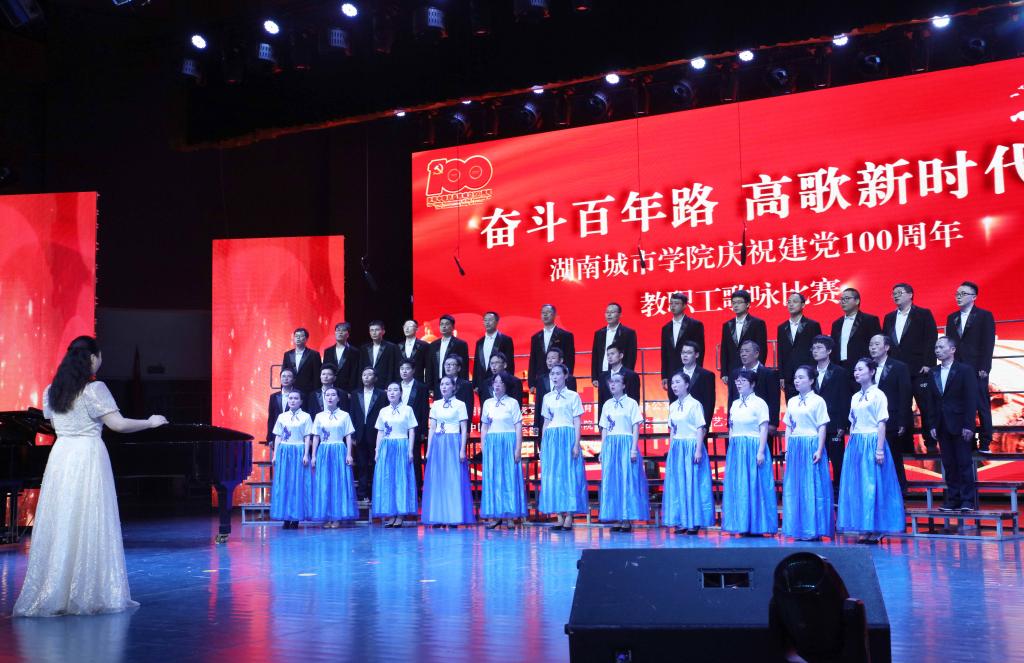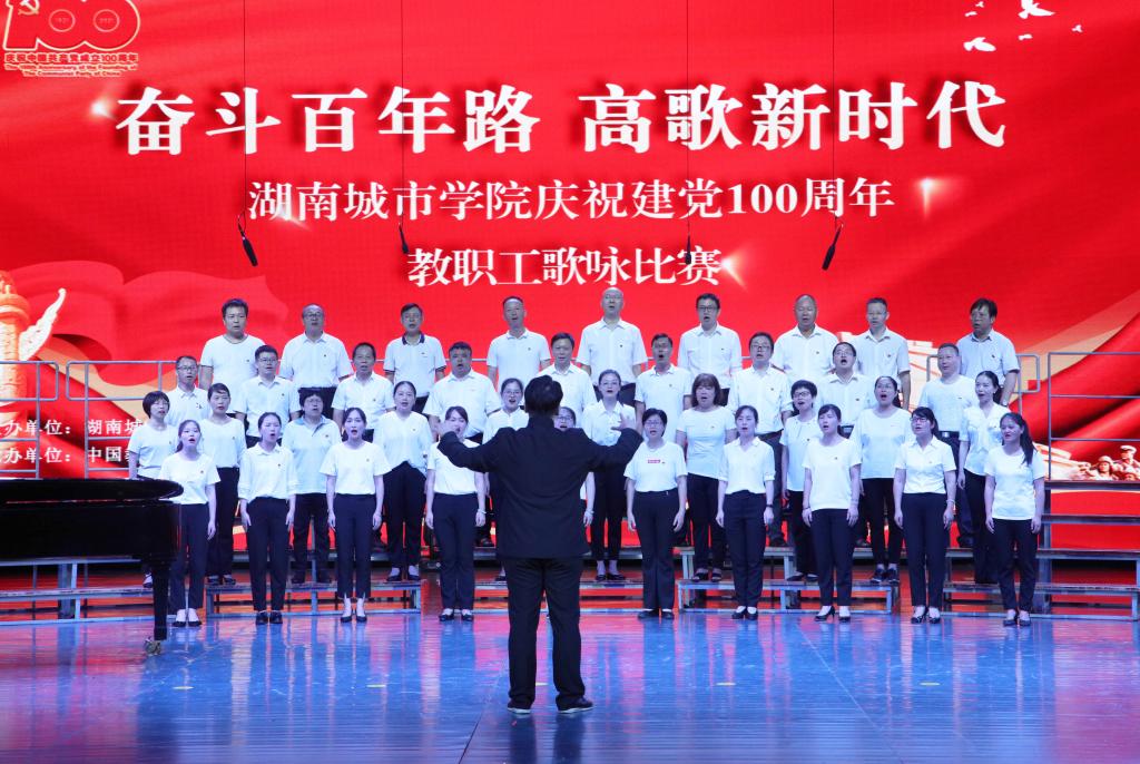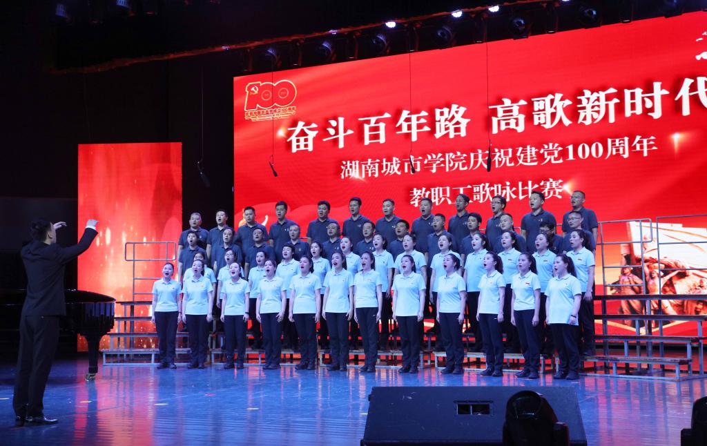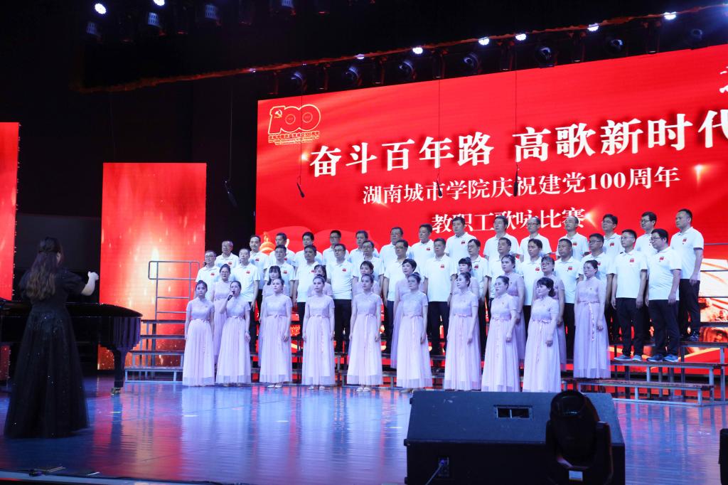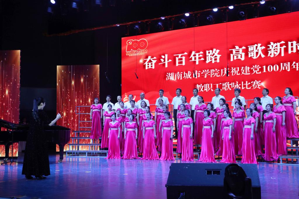 本网讯(通讯员 周敏)为庆祝中国共产党成立100周年,激发广大教职工爱党爱国、同心奋进的热情,2021年7月1日晚,金年金官网“奋斗百年路 高歌新时代”庆祝建党100周年教职工歌咏比赛在音乐厅举行。全体校领导出席,16支合唱队共700余名教职工参加比赛。