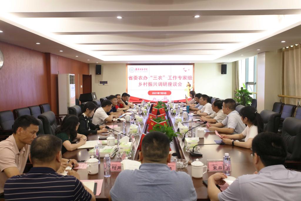 本网讯 2021年7月5日,中央农办乡村振兴专家委员、省委农村工作领导小组“三农”工作专家组组长、湖南师范大学中国乡村振兴研究院院长陈文胜率省农村工作领导小组“三农”工作专家组来校调研乡村振兴工作。校长汤放华出席调研座谈会,副校长谭献良主持会议。