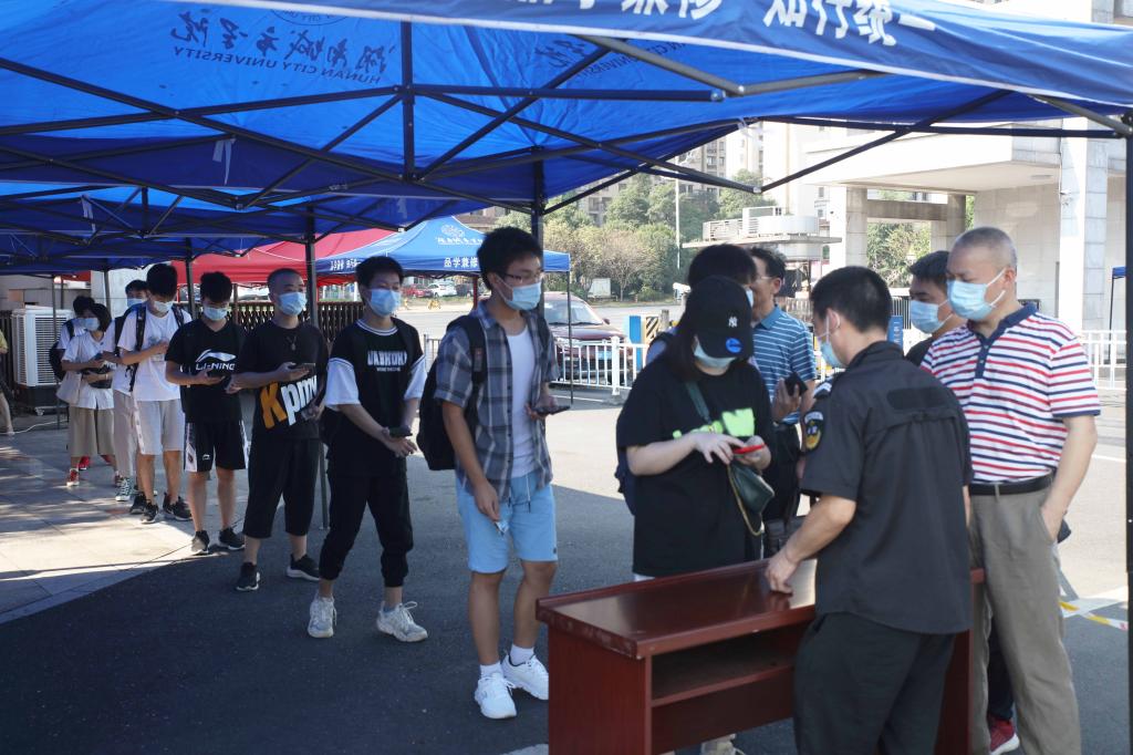 参加演练的师生依次从学校南门入校通道进入,先后接受了证件检查、体温检测、随身行李消毒和健康码、行程码查验。在发现有返校学生的健康码为黄码时,安保人员将其带到旁边临时隔离室,进行信息登记,同时立即报告学校疫情防控办和相关学院,学校疫情防控办将情况立即报告学校疫情防控领导小组和社区,社区上报区疾控中心后,安排专车接该生到集中隔离点采取进一步措施。