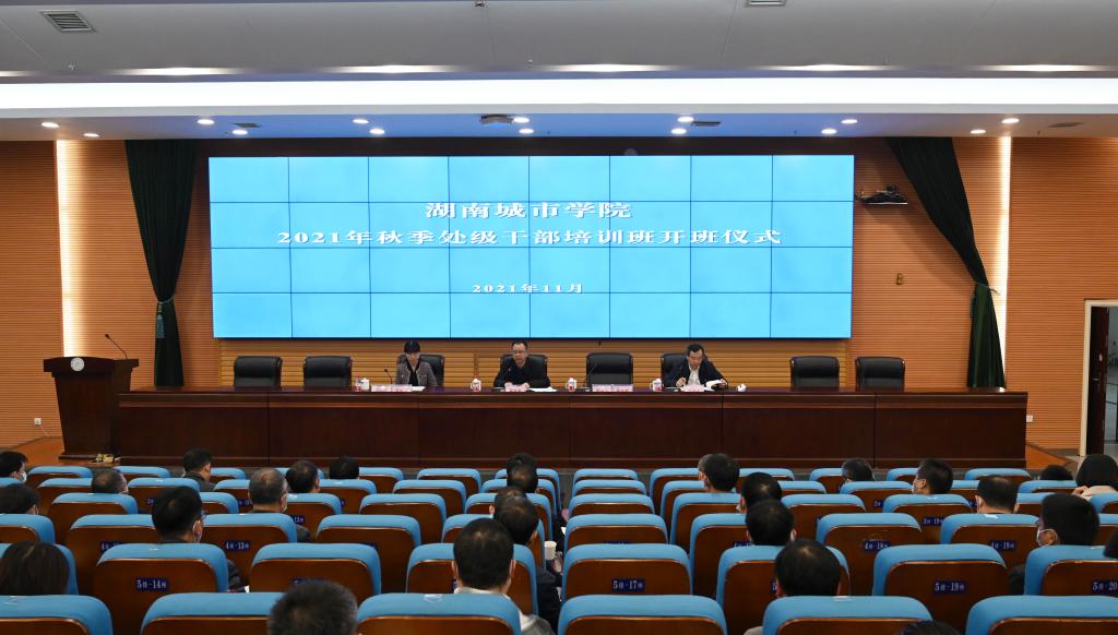 本网讯(记者 文彦波 摄影 博夕 周雨晨 邱元龙)为增强干部的责任感和使命感,提高干部的专业能力和专业精神,进一步落实好第四次党代会精神、推动“十四五”开好局,2021年11月6日—7日,金年金官网在图书馆报告厅举办2021年秋季处级干部培训班。培训班邀请了省委党史研究室原主任、省政府参事张志初,湖南农业大学党委书记陈弘,湖南师范大学原校长刘湘溶,省委教育工委党校常务副校长刘国华,省委党校哲学教研部主任何良安,学校纪委书记陈列尊等校内外专家作了专题报告。全体处级干部参加了学习。党委书记李建奇出席开班仪式、结业仪式并发表讲话,党委副书记何旭娟和党委委员、组织部部长吕贤军分别主持了部分场次报告。
