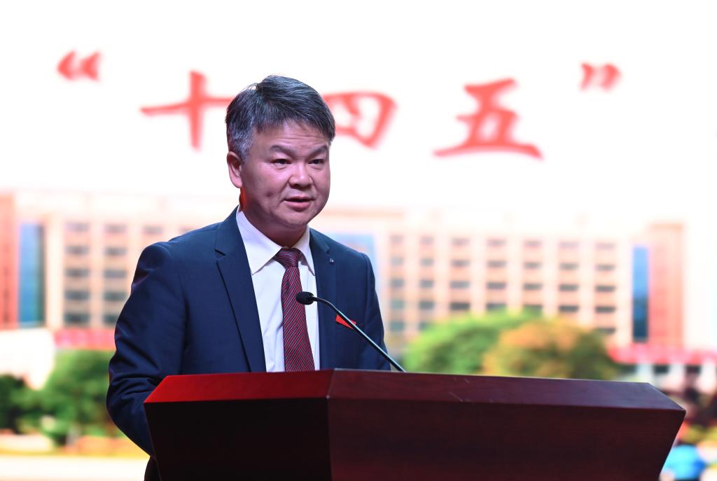 本网讯(记者 文彦波 摄影 博夕 朱李红)2021年11月17日上午,学校在音乐厅隆重召开申硕工作总结暨“十四五”规划核心指标奋进大会。全体校领导,副处以上干部、受表彰人员以及二级学院博士、教授、系(室)中心主任、支部书记代表共200余人参加会议。党委书记李建奇出席会议并讲话,党委副书记、校长汤放华主持会议。