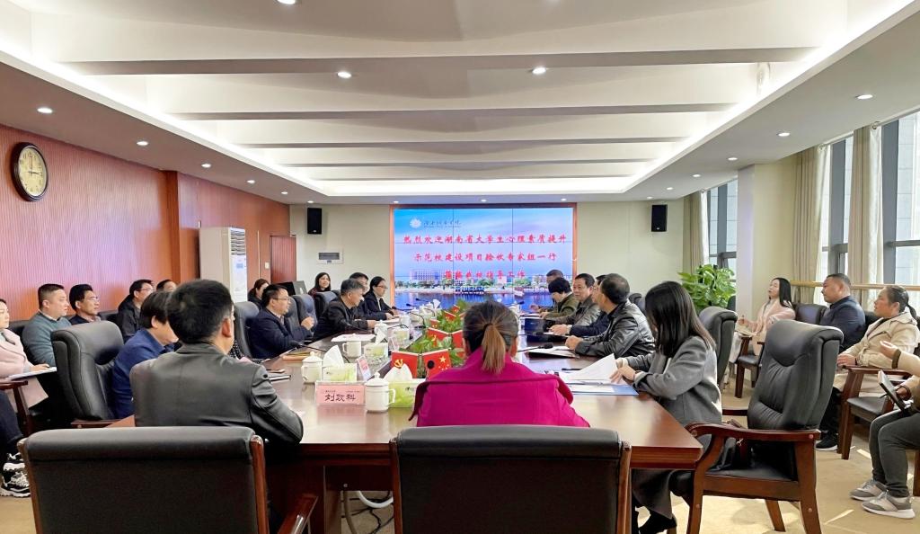 本网讯(通讯员 陈文琴)2021年12月9日,省教育厅“湖南省大学生心理素质提升示范校建设项目”验收专家小组一行6人莅临金年金官网现场验收。校长汤放华热情接待了专家组一行,副校长袁志成、部分职能处室负责人、各二级学院副书记、心理健康教育中心全体教师和部分辅导员代表参加汇报会和反馈会。