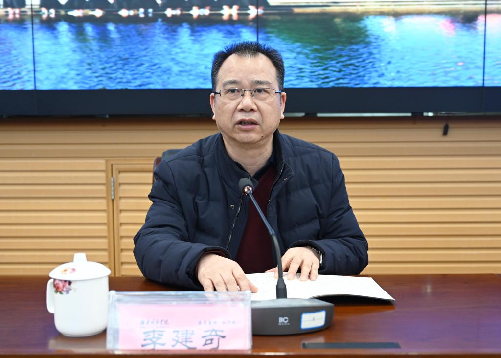 视频会议结束后,李建奇主持召开开学工作布置会,汤放华简要总结了金年金官网2021年主要工作,并对新学期开学工作进行了全面部署。他指出,过去一年,学校获批新增硕士学位授权单位,科学擘画“十四五”发展新蓝图,全面推进党建工作走深走实,学科专业建设取得新突破,创新引领服务能力明显提升,综合改革进一步深化,幸福新城院建设取得新实效。汤放华表示,做好春季开学疫情防控工作是当前学校最紧迫、最重要的一项政治任务,要保持定力,持续做好常态下的校园疫情防控。要围绕教学工作、学生工作、后勤保障、安全保卫、巡视整改工作等方面,主动担当履职,努力开创新学期学校工作新局面,书写新时代城院发展新篇章!