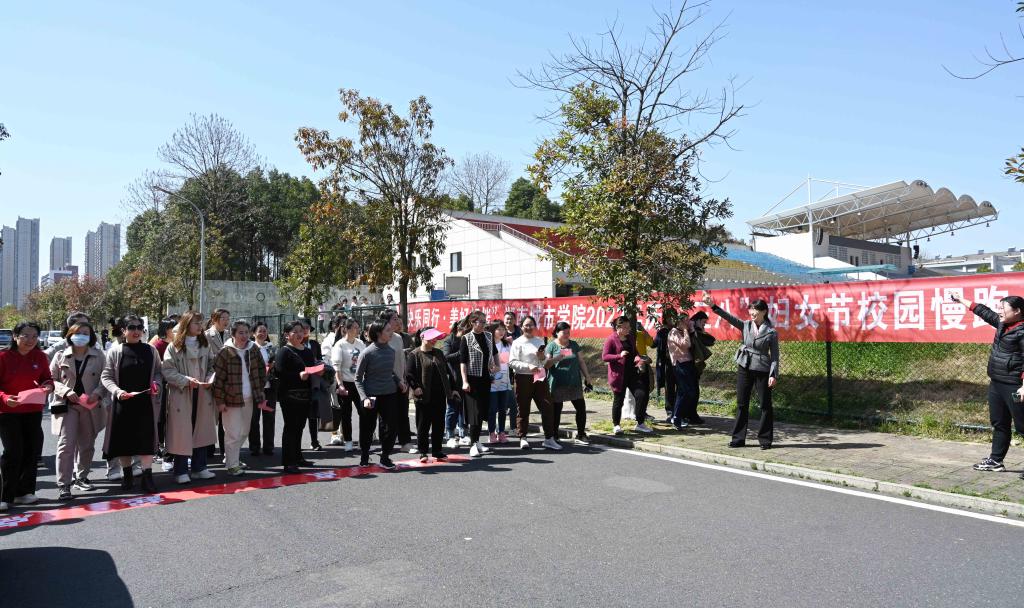本网讯(通讯员 周敏)为庆祝第112个 “三八”国际妇女节,激励广大女教职工以更加饱满的激情在教书育人的岗位上建功立业,3月8日下午,金年金官网举行“快乐同行•美好相伴”庆“三八”国际劳动妇女节校园慢跑+知识竞答活动。全校有近500名女教职工参加了此次活动,党委副书记何旭娟来到现场慰问女教职工,并为第一组参赛选手发令开始比赛。