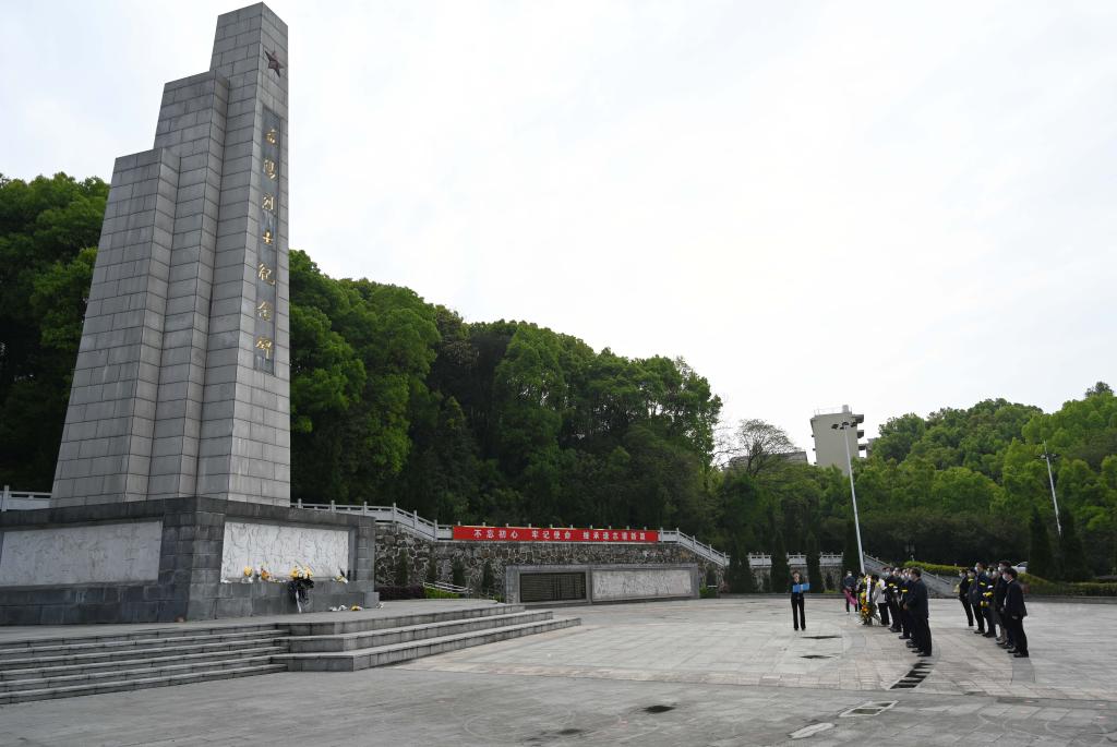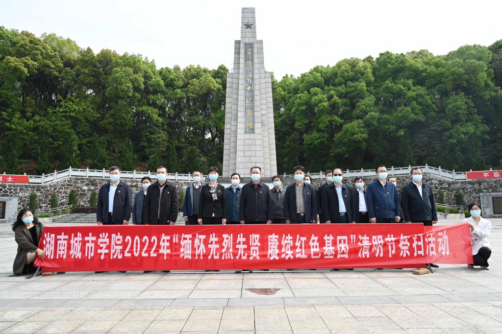 上午9:30,全体成员到达活动现场,严格遵守防疫要求,扫场所码,戴好口罩。苍松翠柏掩映着的益阳烈士纪念碑巍然耸立,大家在烈士纪念碑前整齐列队、肃立,奏唱国歌,工作人员手抬花篮缓步走向纪念碑,校党委书记李建奇和校长汤放华上前为花篮整理缎带。随后,全体人员向烈士默哀,深切表达缅怀之情。大家怀着无比崇敬的心情依次环绕瞻仰了烈士纪念碑,参观了英烈事迹墙,对革命英烈致以无尽哀思与深切怀念。
