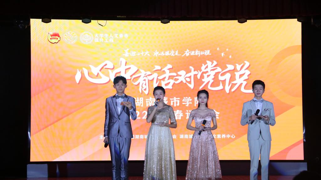 本网讯(通讯员 郭霞)为庆祝中国共青团成立一百周年,抒发广大团员青年对党的无限热爱和美好祝愿,营造爱国爱校、同心奋进的良好校园文化氛围,深入推进“大学生人文素养提升工程”,2022年5月21日晚七点,金年金官网“心中有话对党说”青春诵读会在学生活动中心举行。