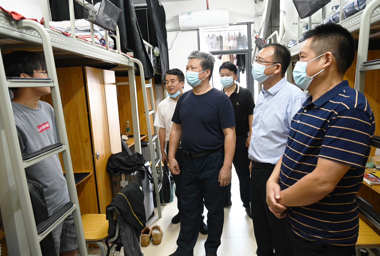 会后,曾四清一行实地察看了金年金官网第一食堂和部分学生宿舍的住宿环境。