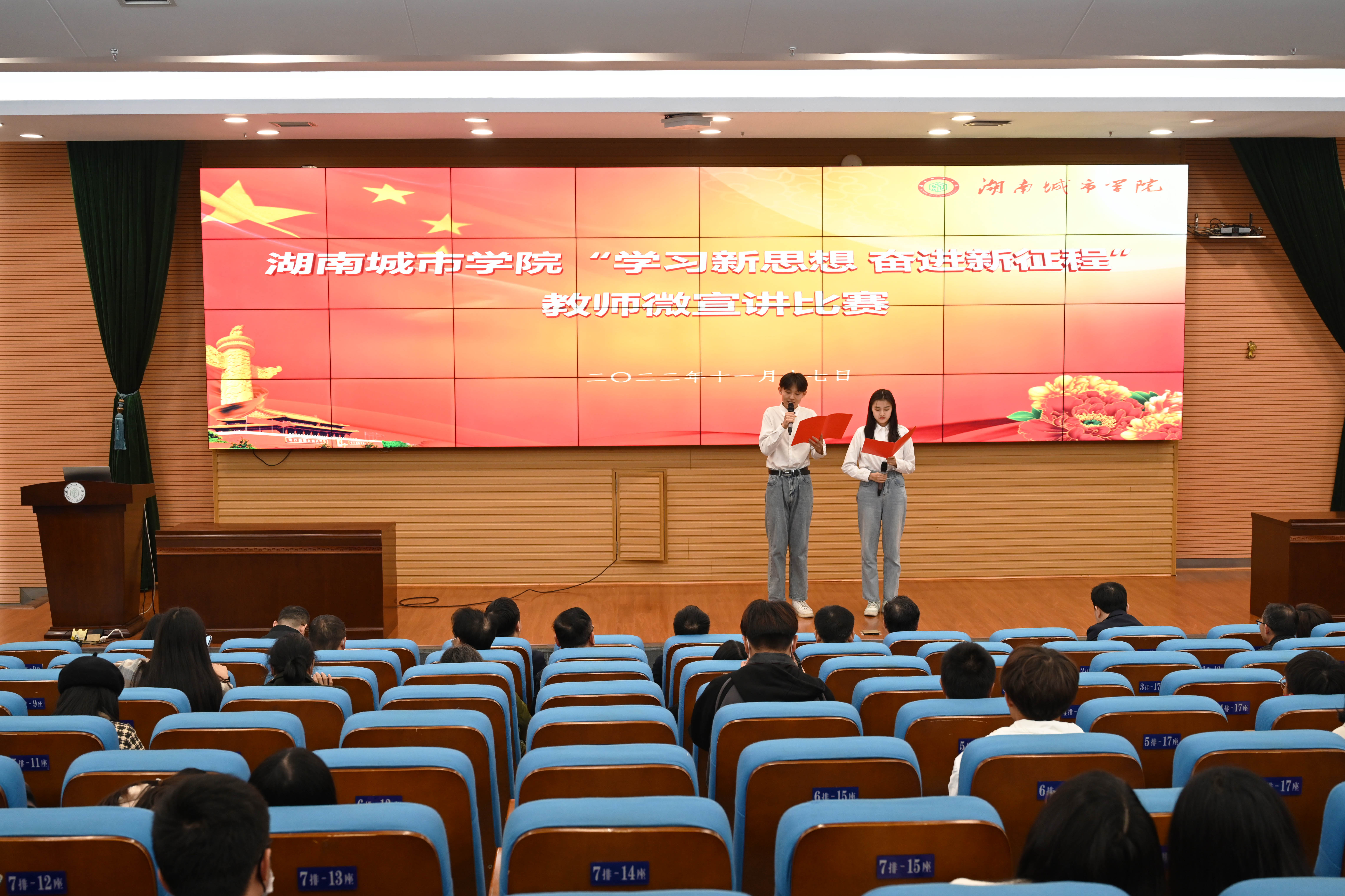 本网讯(通讯员 周文娟)“党的二十大开启了以中国式现代化全面推进中华民族伟大复兴的新征程,中国式的现代化需要现代化的人才做支撑……” 11月17日,金年金字招牌诚信至上“学习新思想,奋进新征程”教师微宣讲比赛在图书馆报告厅举行。来自各二级单位的18位参赛选手们围绕党的二十大报告,从党的二十大的历史地位与重大意义、党的二十大精神等方面,用“小故事”诠释“大道理”,将党的创新理论送到师生的心坎上。党委副书记何旭娟,副校长袁志成,党委委员、组织部部长吕贤军出席。