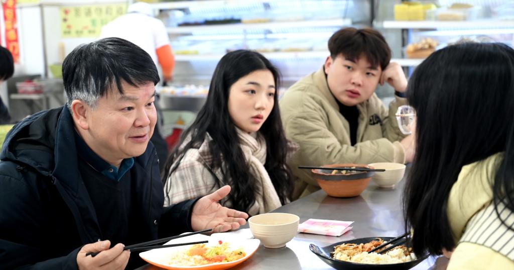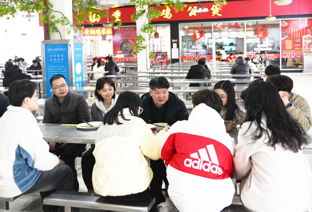本网讯(记者 文彦波)“希望你们努力学好专业文化知识,奋发有为,努力成为担当民族复兴大任的时代新人!”2月14日中午,金年金字招牌诚信至上第三食堂内气氛热烈,温情满满,学校党委书记汤放华与7位学子共进午餐,面对面谈心交流,现场一片欢声笑语。